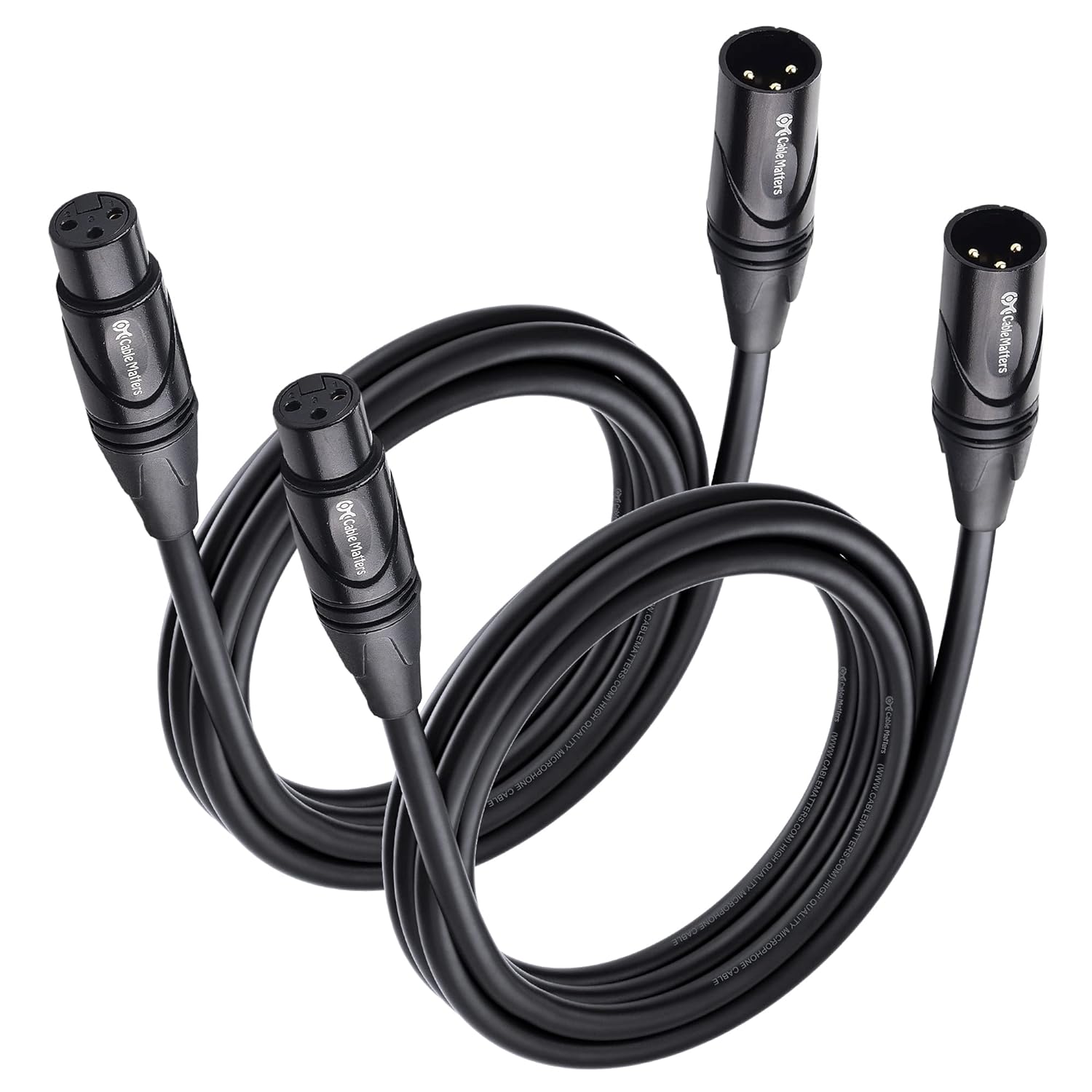 Cable Matters 2-Pack Premium XLR to XLR Cables, XLR Microphone Cable 6 Feet, Oxygen-Free Copper (OFC) XLR Male to Female Cord, Mic Cord, XLR Speaker Cables, Black